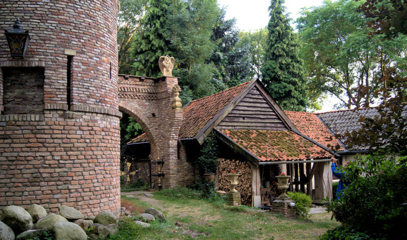 Kasteel met naastgelegen woning van de heer Halman. Beide zijn met elkaar verbonden door een onderaardse gang.