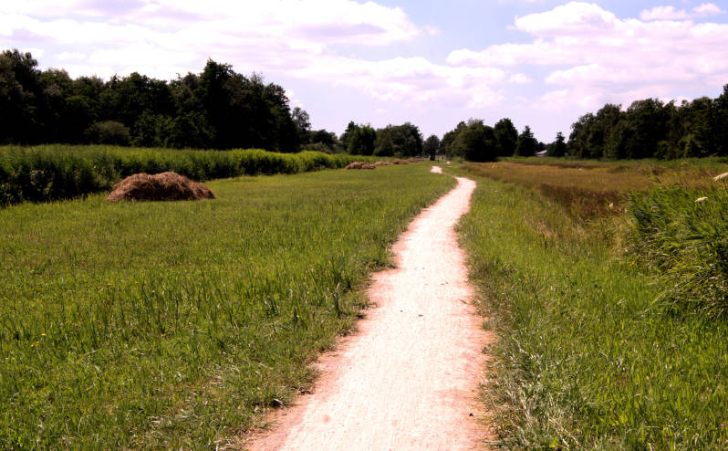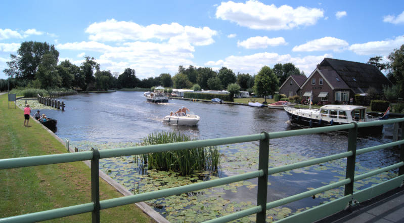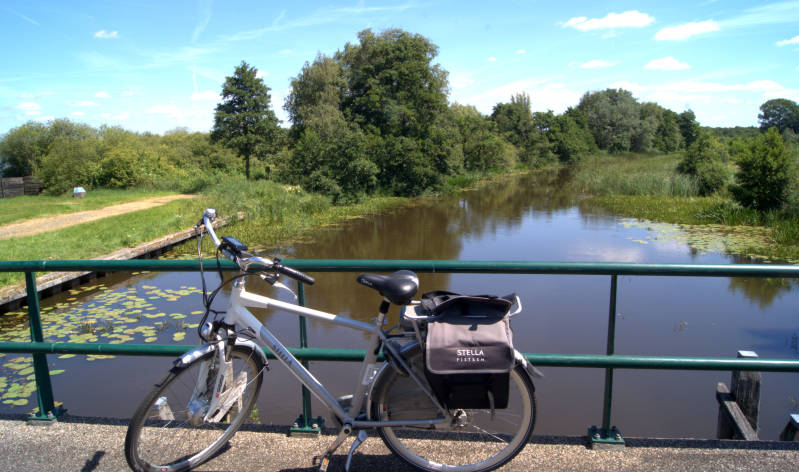 Vlak voor Wolvega, passeren we een mooi natuurgebied, waar we via een steil bruggetje het kanaal oversteken.