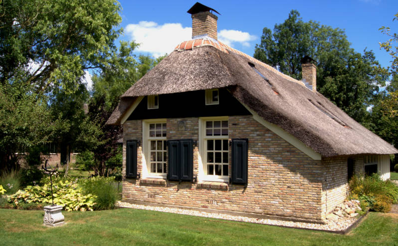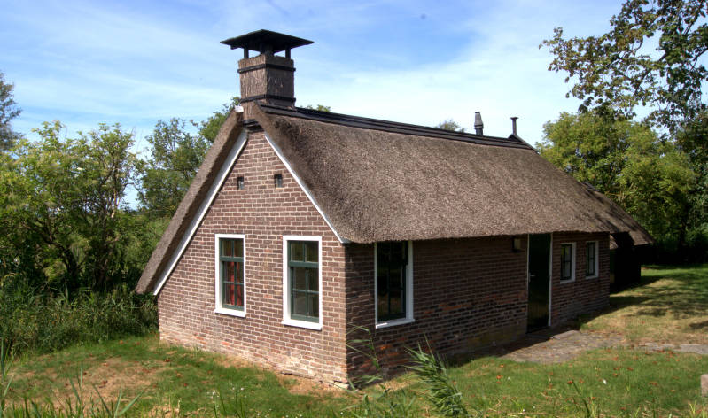 We fietsen van Ossenzijl naar Kalenberg, waar we onderweg deze gerestaureerde veenhuisjes tegenkomen. Vroeger in de oude staat bewoond door veenarbeiders.