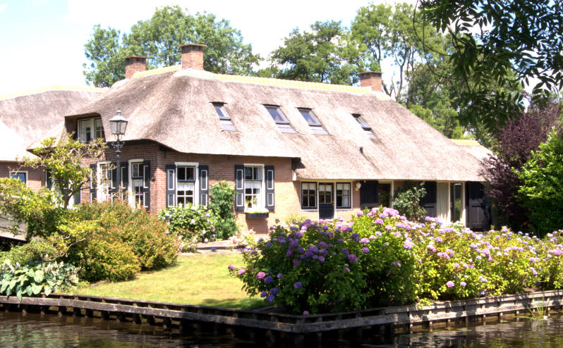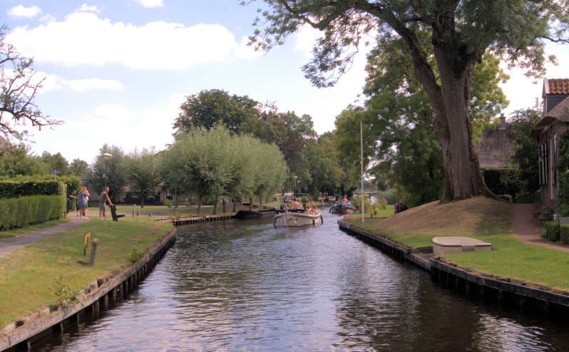 Aangekomen in Giethoorn, wandelen we door het dorp. Desondanks het weer prachtig is, valt de drukte mee, ook op het water is het niet bijzonder druk. Wel lopen er zoals altijd ook nu weer veel Chinezen rond.