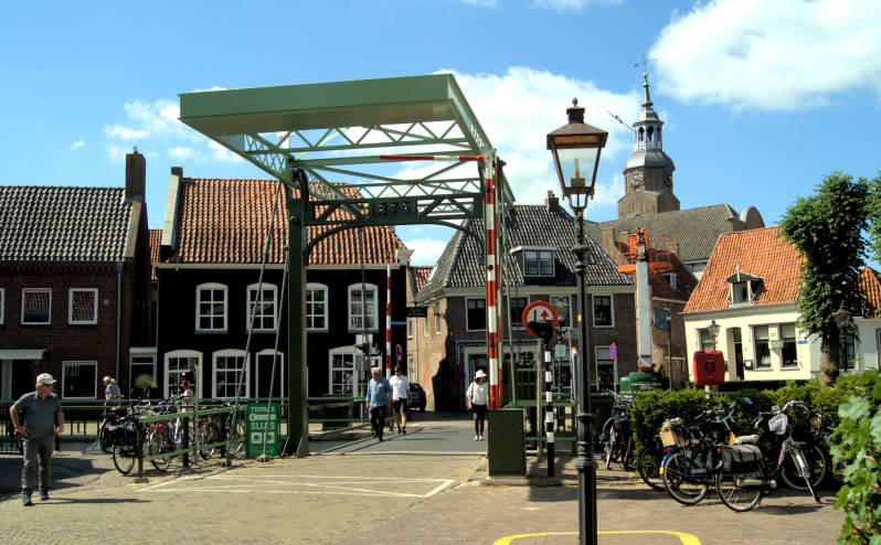 In Dwarsgracht aangekomen, moeten we langs het water over een akelig smal fietspad met vele zeer smalle bruggetjes. Omdat er veel fietsverkeer is en evenzoveel voetgangers, lopen we hier een groot stuk op weg naar de pont in Jonen.