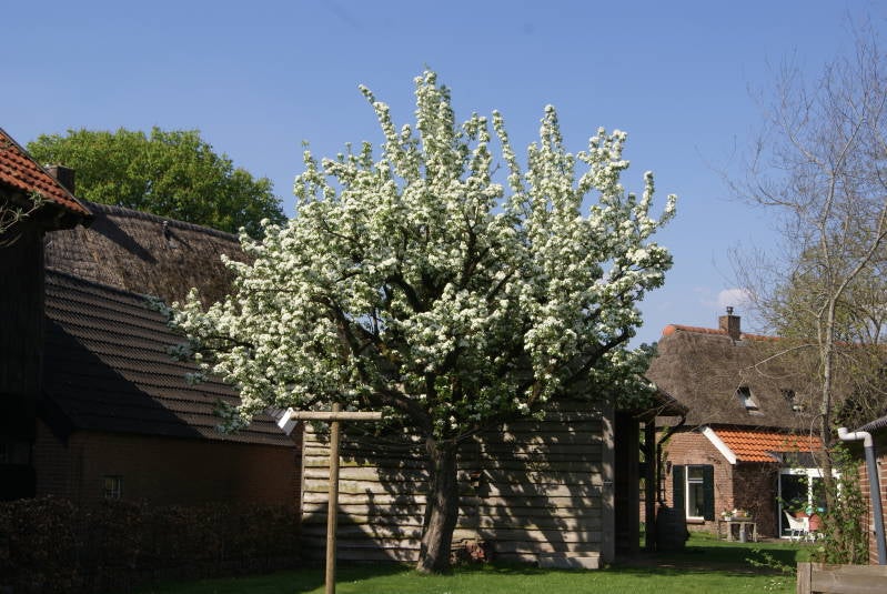 We vinden een leuke plek, nabij een prachtig bloeiende Peereboom.