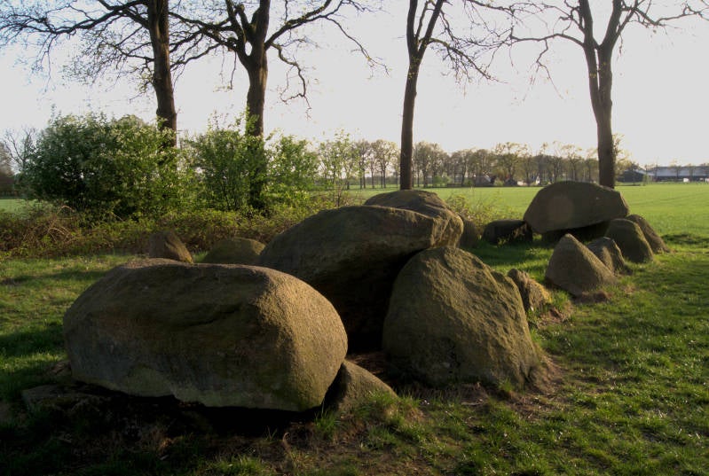 Na het avondeten, maken we nog een wandeling door Noord Sleen. We komen langs 2 Drentse hunebedden, de D 50 en de D 51. Een tweeling hunebed dicht bij elkaar gelegen. De D 51 is erg vervallen, terwijl de D 50 nog bijna volledig intact is, met een mooie buitenste stenenrij.