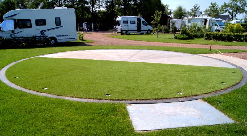 Op deze camperplaats, kun je ook op een draaiplateau staan. Je kunt deze zelf bedienen of op automatisch zetten en de gehele dag met de zon mee ronddraaien met je camper. (Uniek in Nederland).