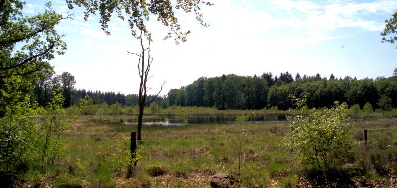 Onderweg komen we langs mooie dichtgroeiende vennetjes met op dit moment het prachtig bloeiende Veenpluis.