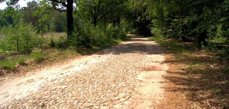 Omstreeks 12.30 uur gaan we vanaf de camperplaats op stap. We fietsen naar de Staatsbossen.