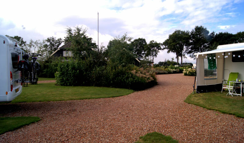 De camperplaats met z'n parkachtige aanleg met mooie beplanting is ruim opgezet. Elke camper staat ruim en de gasten hebben veel privacy op hun eigen grasmat.