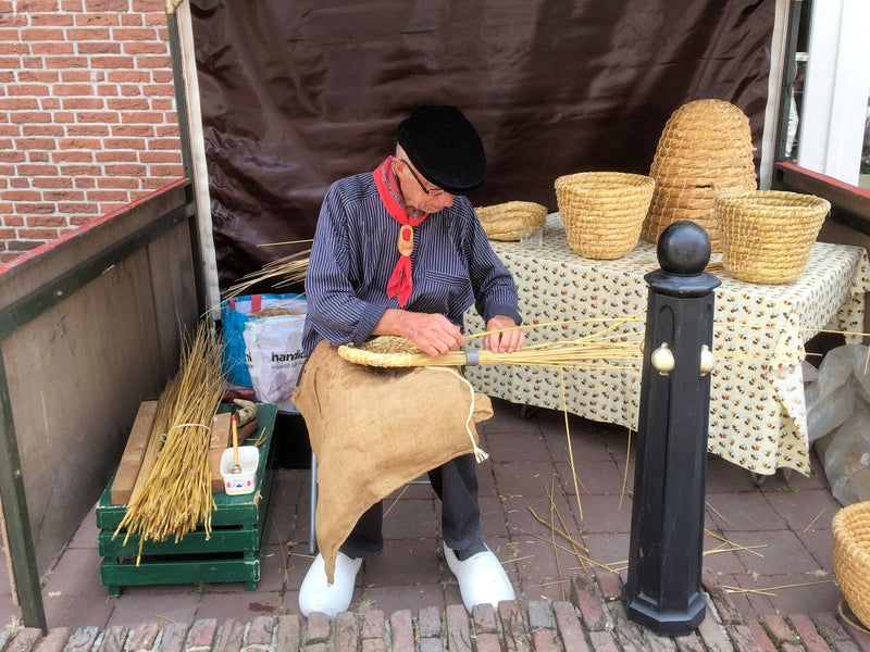 De mandenmaker aan het werk, een oud beroep uit vroegere tijden.
