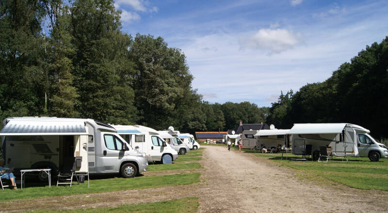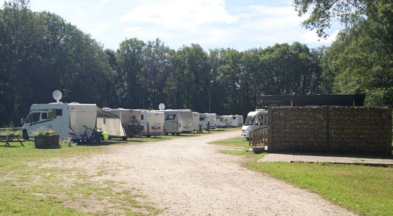 Gezellige camperplaats, een en rust met rondom bos. Links achter op de foto staat onze camper.