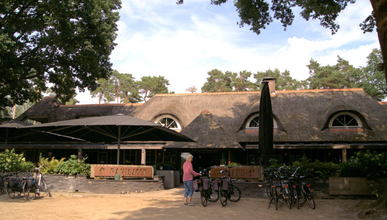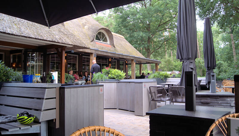 Na een toch wel lange fietstocht, stoppen we in het Lutterzand voor het nuttigen van koffie met appelgebak. Even heerlijk in de schaduw.