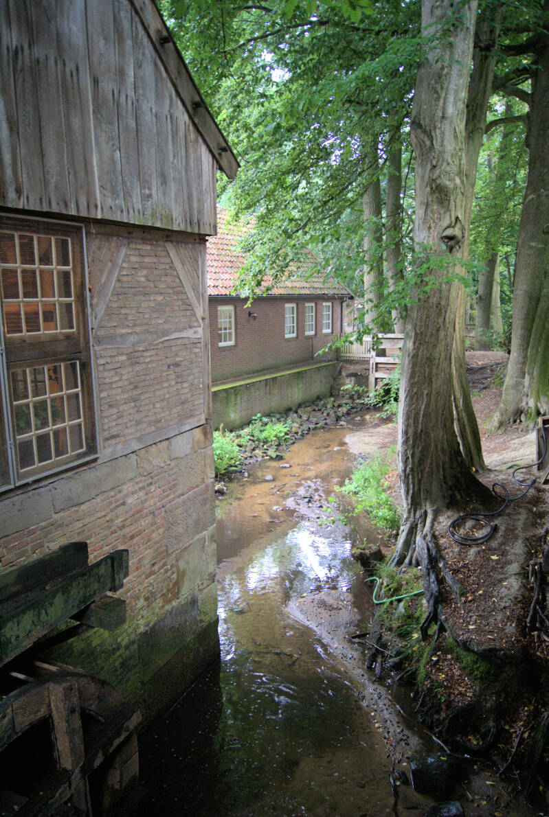 Door een mooi bosgebied met een oprijlaan met grote beuken komen we weer bij een oude waterrad.