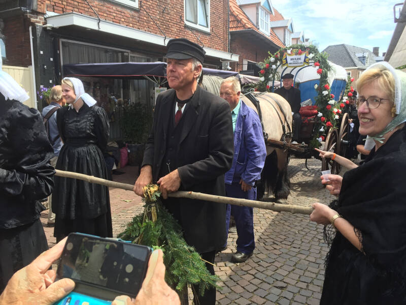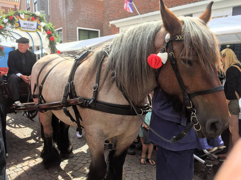 Ook demonstratie van hoe vroeger een bruiloft (trouwerij) in het werk ging. Met paarden en een oude versierde wagen. We kregen een heerlijke borrel aangeboden. Leuk om te zien.