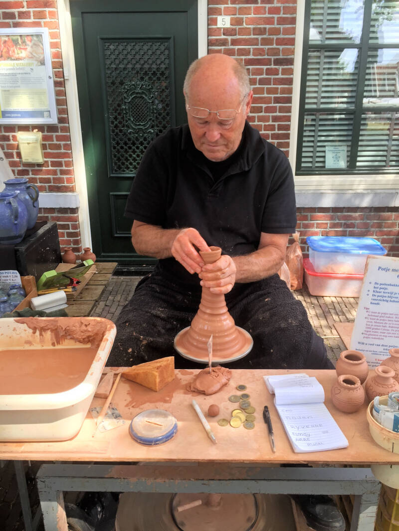 Ook de pottenbakker was druk aan het werk. Een zeer speciaal beroep. Je kon er ook kleine vaasjes en potjes kopen met je naam er in gegrafeerd !