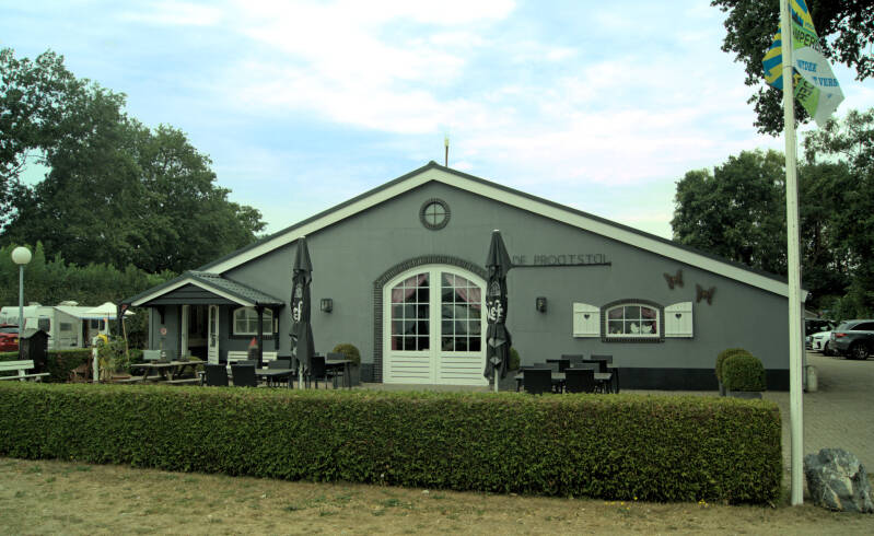 De praotstal, een bijeenkomst ruimte, waar ook hapjes en drankjes te verkrijgen zijn. Nu door gezondheidsproblemen gesloten. Ook vindt je hierin ondergebracht, toiletten en douches.