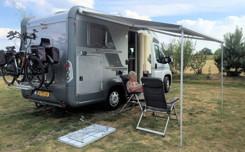 Weer terug bij de camper: 56 km gefietst deze dag.