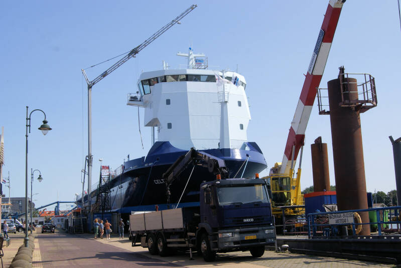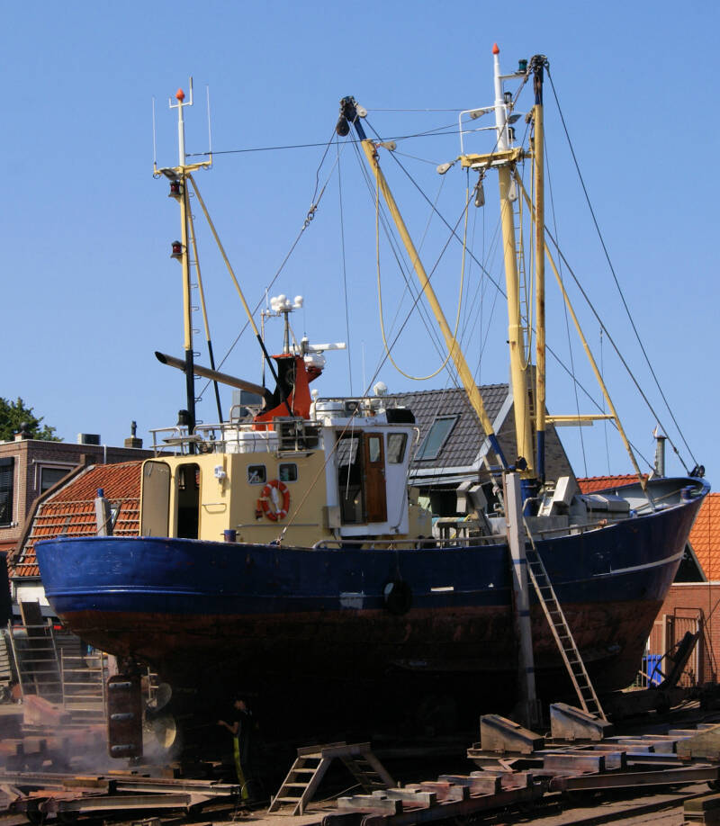 Vissersboot uit Urk op de werf voor groot onderhoud.