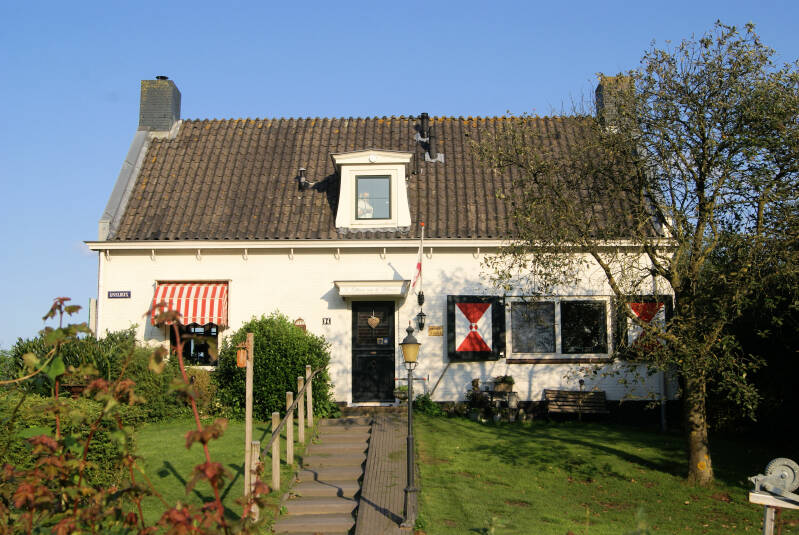 Foto boven: De woning staande naast de molen waar Ernst en Janneke 2 kamers hebben voor B&B gasten. Ook is er nog een B&B mogelijkheid in de tuin. Daar staat een leuk tuinhuis.