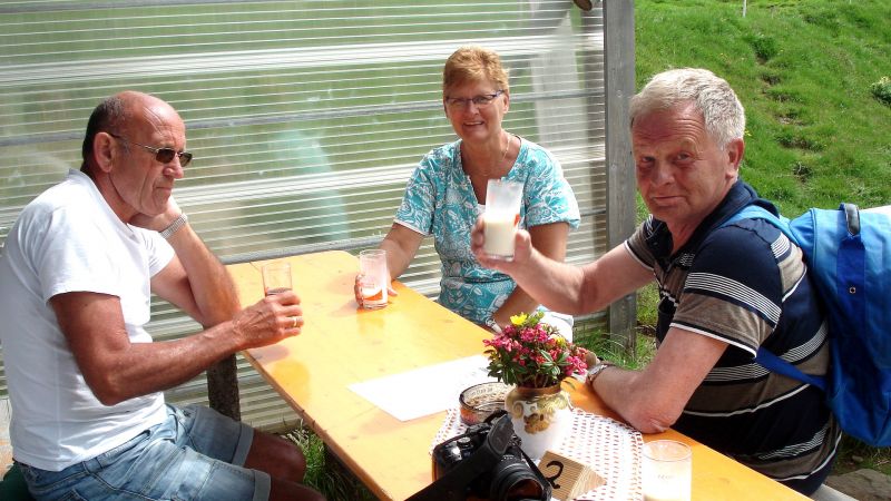 Boven drinken we heerlijke verse almenmelk bij een Italiaanse boer.