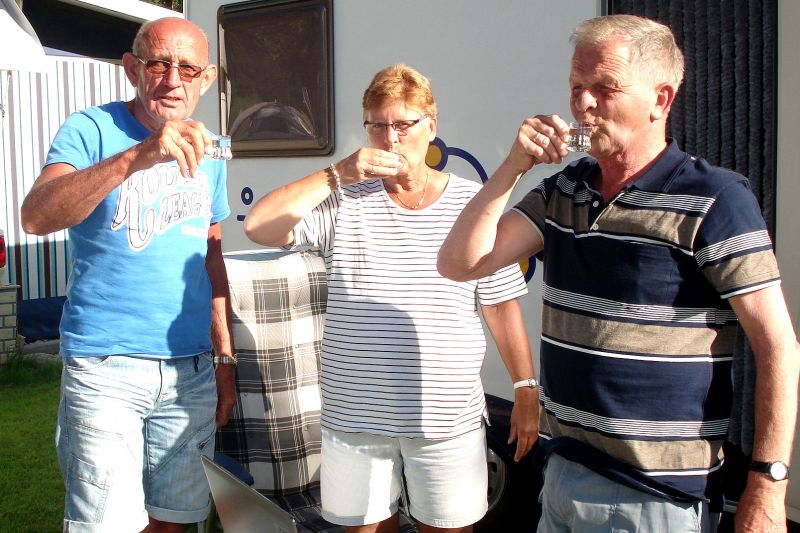 Nog even toosten voor we vertrekken.