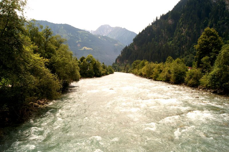 Omdat er nog veel smeltwater van de bergen stroomt, moet de Ziller nog heel veel water afvoeren.