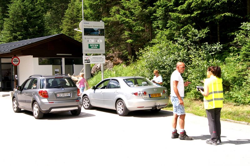 Voor we naar de stausee kunnen, moeten we 15 minuten wachten om door de tunnel te kunnen. Er is maar 1 rijstrook.