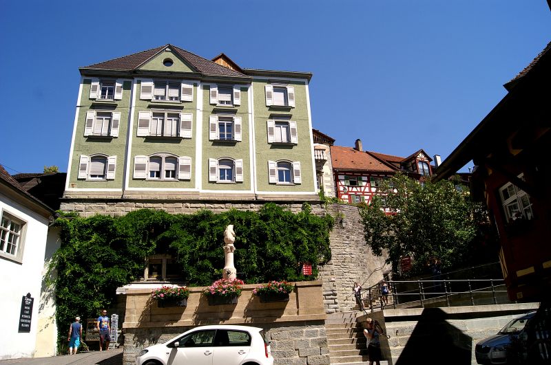 In Meersburg moeten we vele trappen naar beneden om bij de Bodensee te komen, dit is een hele afdaling.