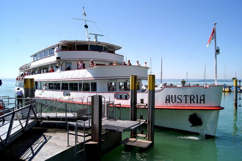 In Meersburg stappen we aan boord van de Austria om een boottocht te maken naar Konstanz, aan de overkant.