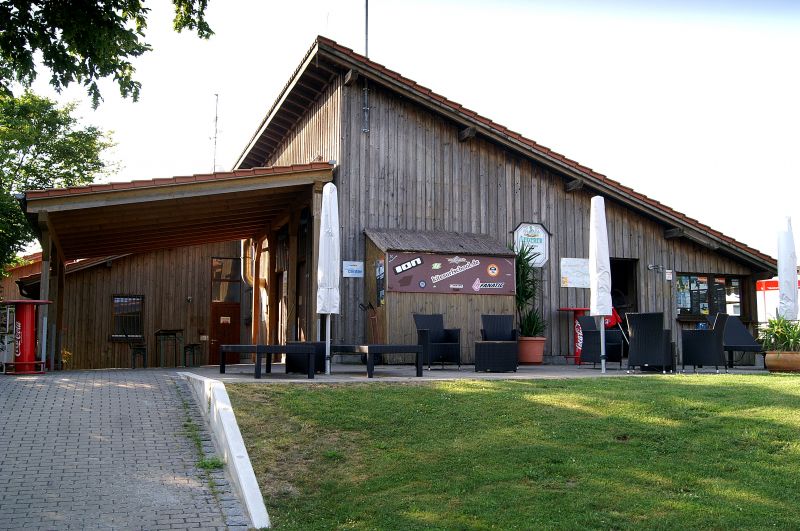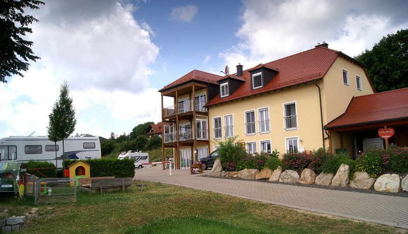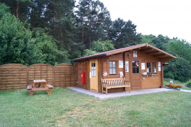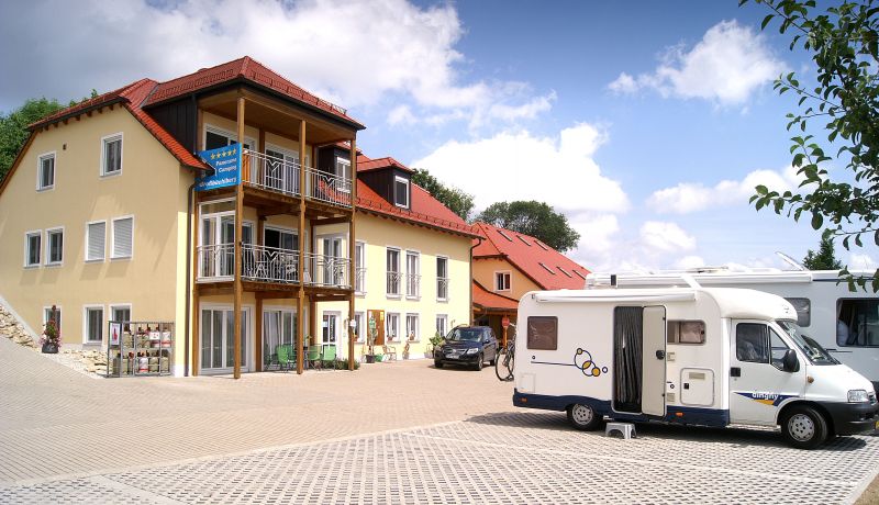 Kiosk en sanitair gebouw bij de camperplaats Gunzenhausen.