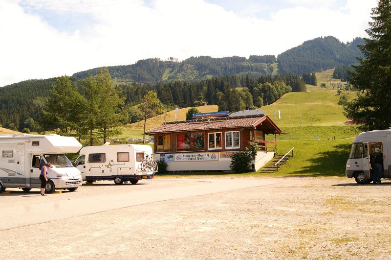 Aankomst op de camperplaats in Nesselwang.