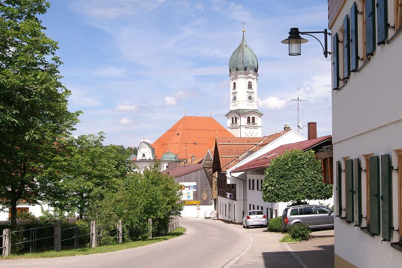 Doorzicht p het stadje Nesselwang.