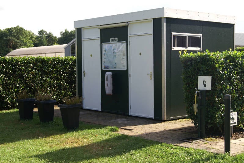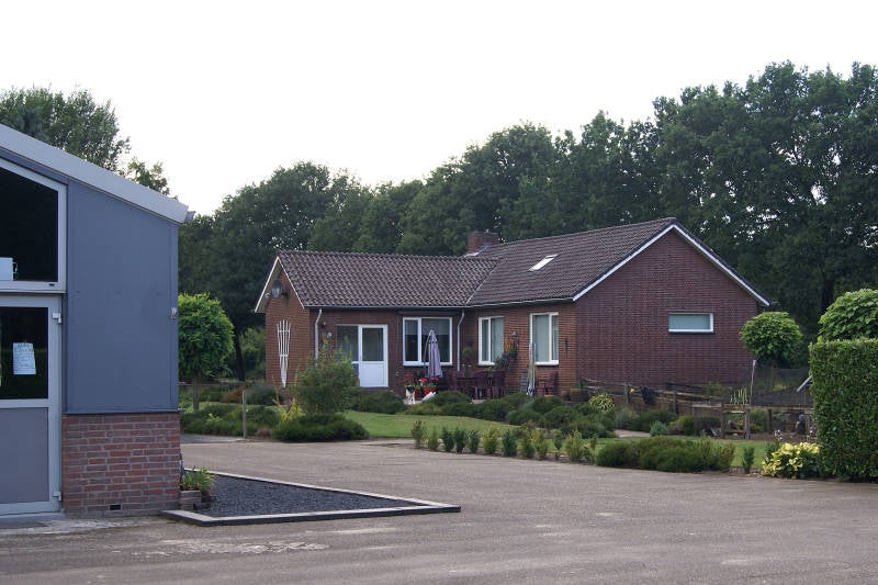 Impressie van Camperplaats "Bos & Heide" met beheerderswoning en klein toiletgebouwtje. In de avond worden we hier heel hartelijk verwelkomd door de beheerdersvrouw. Leuke plaats aan de rand van Nationaal Park