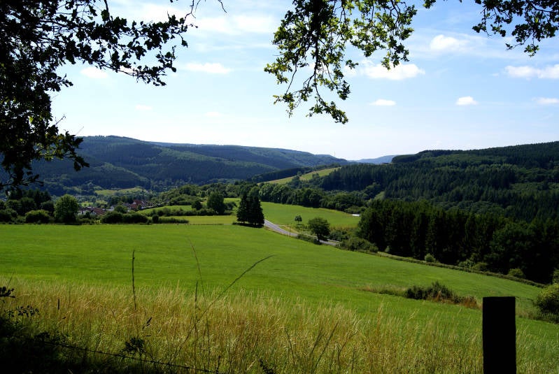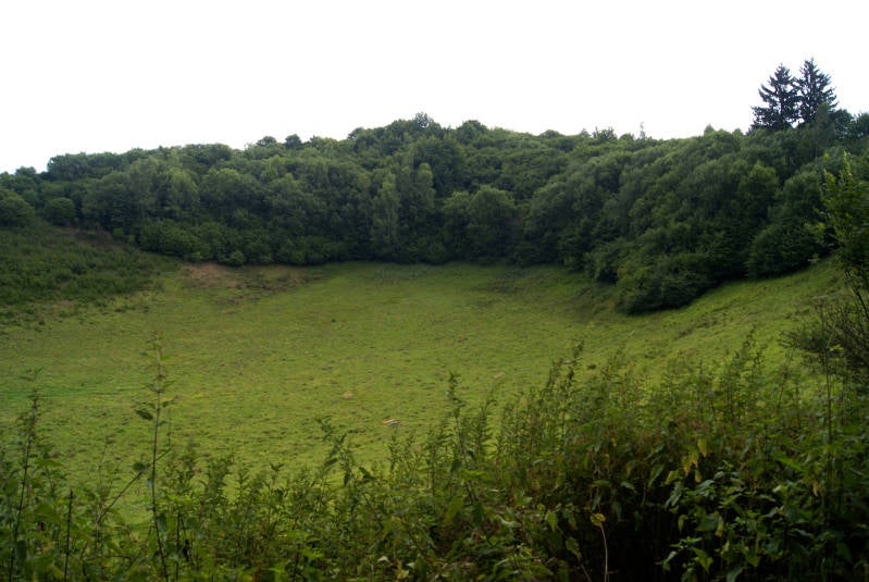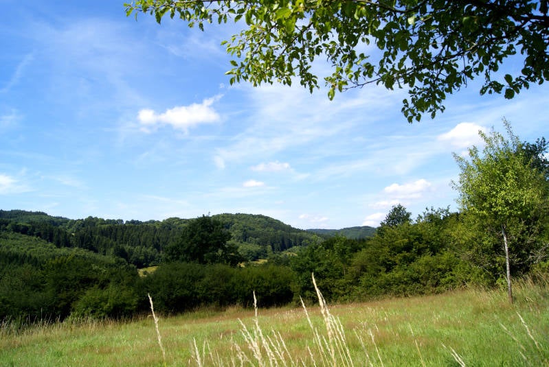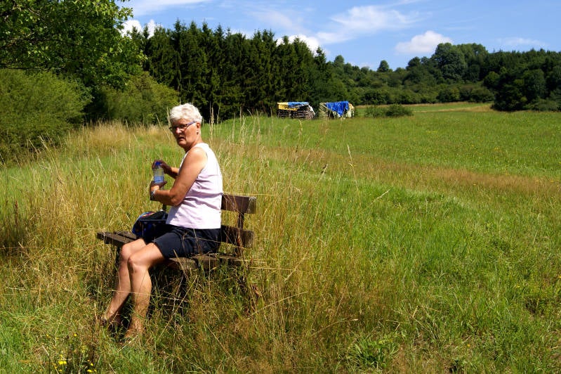 Maandag 17 juli: Het is behoorlijk warm. Toch maken we een wandeling naar boven, naar het oude vulkaangebied rond Gerolstein.