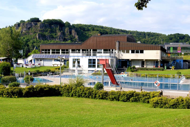 De Camperplaats van Gerolstein is een gemeentelijke instelling. De overnachtingskosten bedragen € 10,00 per etmaal, incl. 2 personen, elektra en water. Je hebt daarbij gratis dagelijks toegang tot het naastgelegen schitterende hallen- en freibad. Heerlijk zwemmen en douchen. (onderstaande foto's)