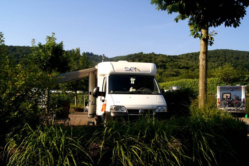 Na nog een uurtje rijden langs vele mooie binnenwegen, komen we zonder het te weten uit bij de Moezel. Hier vinden we in Bremm aan de Moezel een hele mooie camperplaats, waar we dan ook gaan staan.