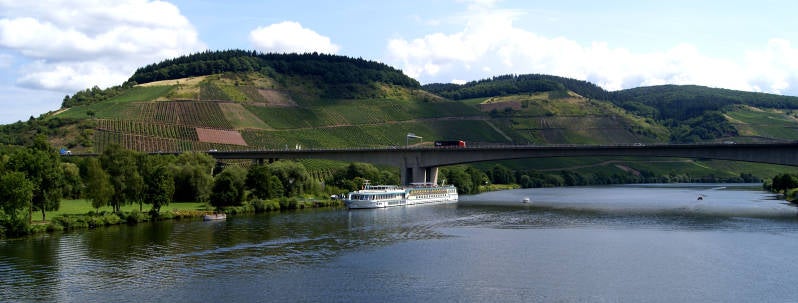 Aan de oever van de Moezel. met z'n wijnhellingen