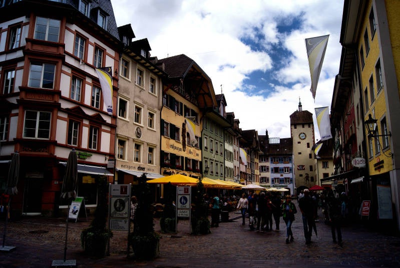 Waldshut in het Zwarte Woud. Een mooie oude stad, met een door stadspoorten afgesloten Aldstadt. Leuke winkelstraat in het centrum. Stad ligt aan de Rijn op de grens met Zwitserland.