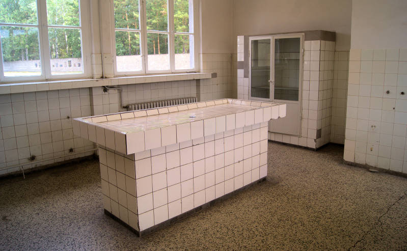 Werkkamer van SS artsen, die er de meest gruwelijke praktijken op na hielden. Zo werden van gevangenen ledematen geamputeerd, waarmee ze probeerden die bij gewonde Duitse soldaten weer te herplaatsen.