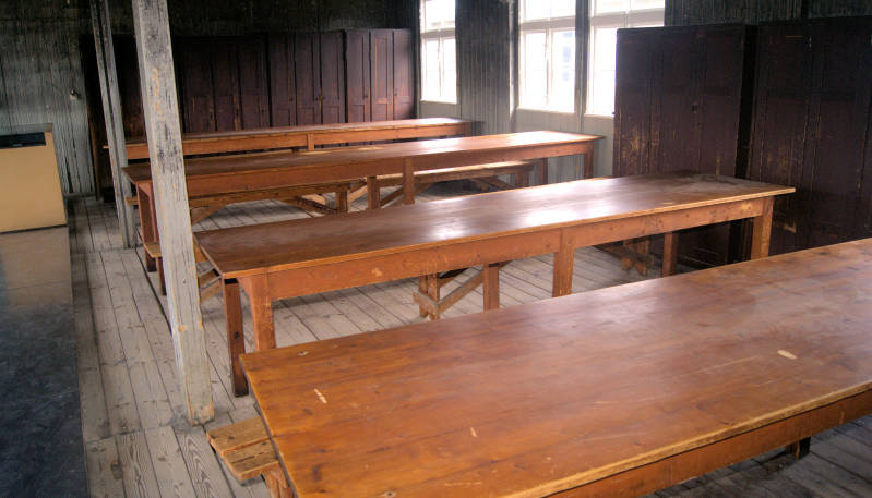 Twee gerestaureerde werkbarakken, die nu als expositieruimte worden gebruikt.