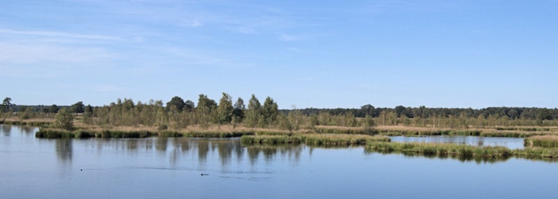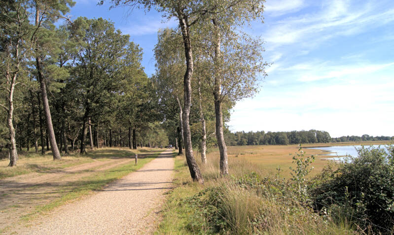 Vanaf de camping fietsen we langs de Boerveense Plassen richting Stuifzand.