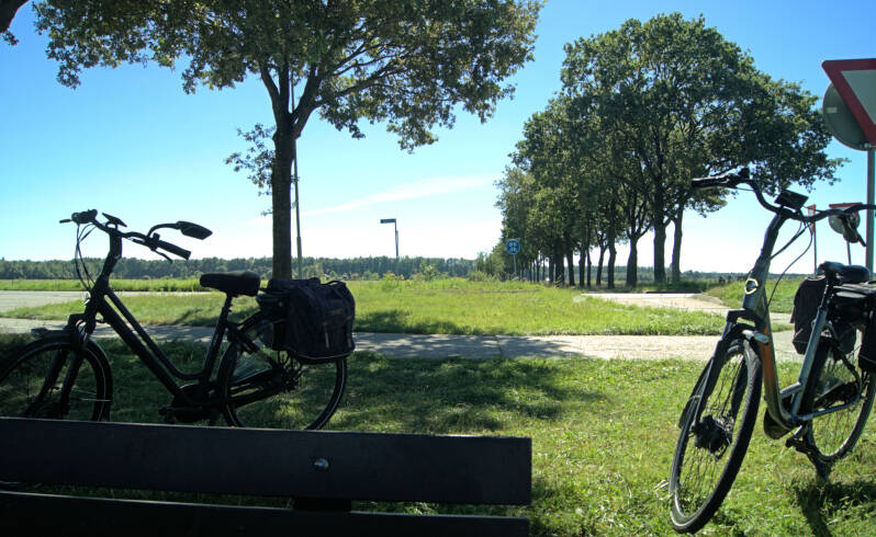 Na Nieuweroord, fietsen we weer verder. Nog eenmaal uitrusten onderweg bij minicamping Zandgaten nabij Stuifzand en dan verder naar de camper.