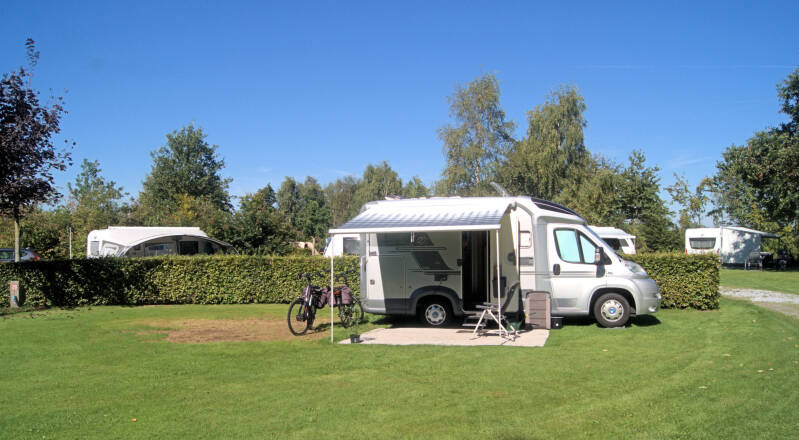 Wat een mooie ruime plaats hadden ze voor ons bedacht. Zeer ruim en de hele dag volop zon. Natuurlijk konden we achter de camper ook no in de schaduw zitten.