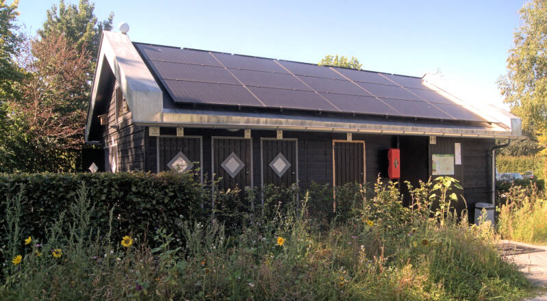 Een mooi en netjes verzorgd sanitairgebouw. Met ook voldoende gratis douchegelegenheid.